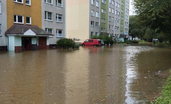 ul. Jagiellońska – droga nieprzejezdna (zalany odcinek drogi)