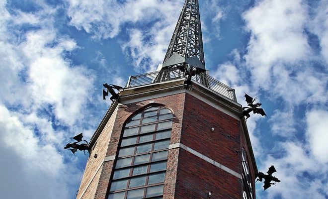 W 1493 roku dostaliśmy bardzo realny wizerunek miasta. Widzimy masyw kościoła św. Jakuba oraz budowę dzwonnicy i wieży ratusza. Charakterystyczna “szubienica” na środku grafiki to nic innego jak średniowieczny żuraw budowlany. W 1493 roku ilustrator dokładnie oddał stan realizacji też ważnej inwestycji. Wówczas gotowa była czworoboczna część wieży. W ciągu kolejnych lat wzniesiono część ośmioboczną i dodano smukłą iglicę.