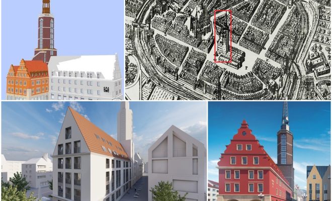 Z kolei w 2025 roku przedstawiono nowy wariant zabudowy skrzydła ratusza. Budynek, który powstaje na betonowym podeście gabarytowo z pewnością nawiązuje do bryły dawnego ratusza, jednak na tym podobieństwa się kończą.