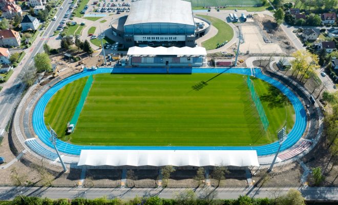 Piłka nożna to nie wszystko. Wokół murawy powstaje także nowoczesna bieżnia.
