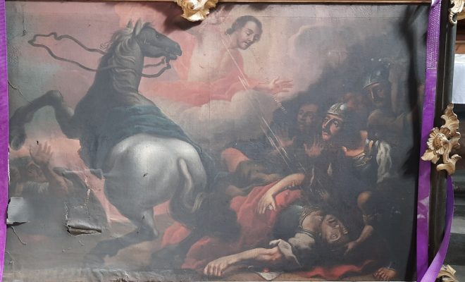 Zakończyły się prace związane z remontem barokowego obrazu “Nawrócenie Św. Pawła”, który ponownie zawisł nad głównym wejściem do kościoła św. Piotra i Pawła w Nysie.