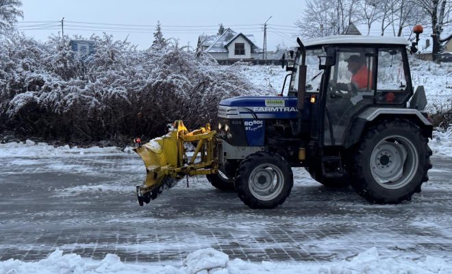 Traktorki, sprzęt lekki, łopaty i miotły – w Otmuchowie od wczesnych godzin trwa intensywne odśnieżanie dróg i chodników. W nocy nawiedził nas obfite mokrego śniegu.