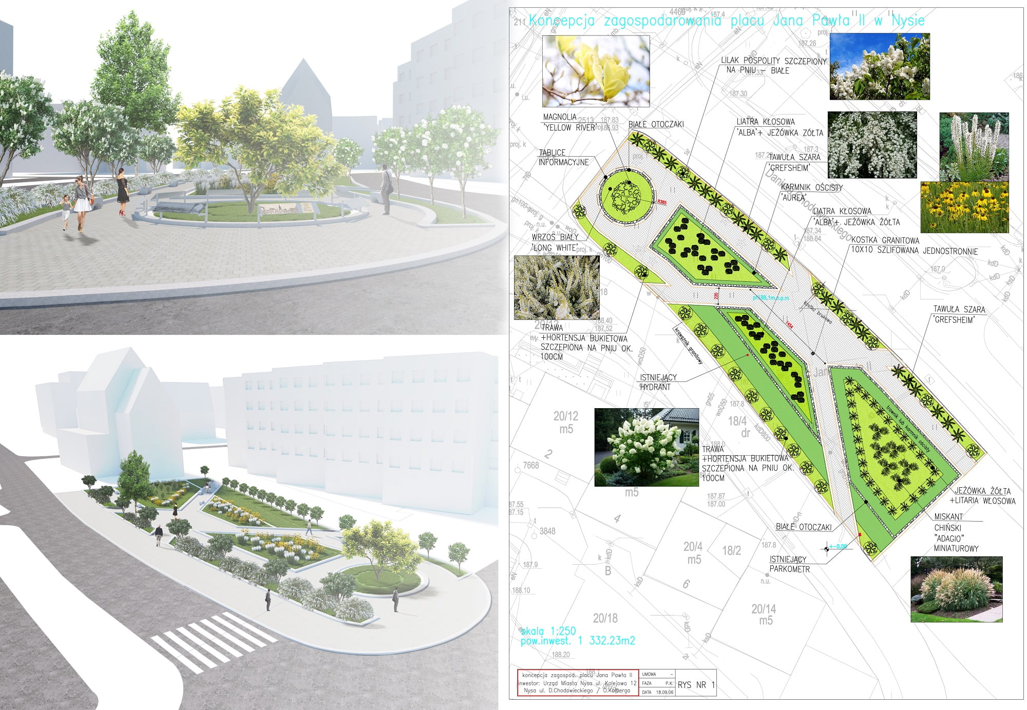 Obecnie z placu zniknęły wszystkie iglaki, które były samosiejkami. W ich miejsce pojawią się nowe nasadzenia, a będą to między innymi: magnolie, lilak pospolity oraz wrzos biały