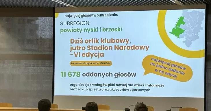 W głosowaniu na projekty zgłoszone do 5. edycji Marszałkowskiego Budżetu Obywatelskiego wzięło udział niemal 62 tysiące osób. Najwięcej głosów oddano na projekt z subregionu obejmującego powiaty nyski i brzeski. Projekt, który zdobył rekordową liczbę głosów zatytułowany jest ‘Dziś Orlik klubowy, jutro stadion narodowy’. To już 5. edycja inicjatywy, której celem jest przede wszystkim aktywizacja dzieci ... -