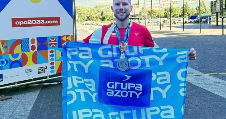 Bartłomiej Mróz zdobył 2 srebrne medale na Igrzyskach Europejskich w Rotterdamie. Sponsorem sportowca jest Grupa AZOTY ZAK. Grupa AZOTY ZAK jest głównym sponsorem parabadmintonisty od ponad 15 lat. fot. fb/Grupa AZOTY ZAK S.A. -