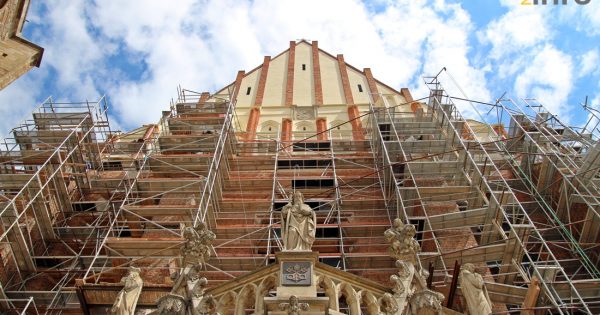 Remont kościoła Wniebowzięcia NMP przy Rynku Solnym w Nysie mocno przyśpiesza. Obecnie rusztowania są rozstawione nie tylko od strony wieżowej fasady ale także od ulicy Grodzkiej, a pomiędzy rusztowaniami widać coraz więcej nowej elewacji. Barokowy kościół został wzniesiony przez Jezuitów, którzy pojawili się w Nysie w początkach XVII wieku. To za ich sprawą powstało kolegium ... -